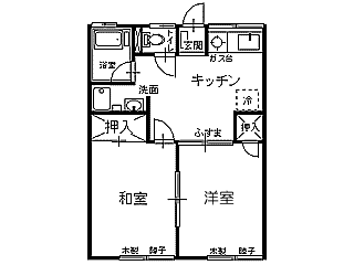 | 詳細間取 | 2DK (和6帖×1、洋6帖×1、DK6帖) | ||