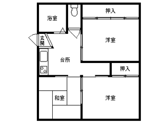 | 詳細間取 | 3K (洋6帖×2、和4.5帖×1、キッチン4帖) | ||