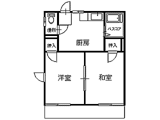 | 詳細間取 | 2K (和6帖×1、洋6帖×1、キッチン4帖) | ||