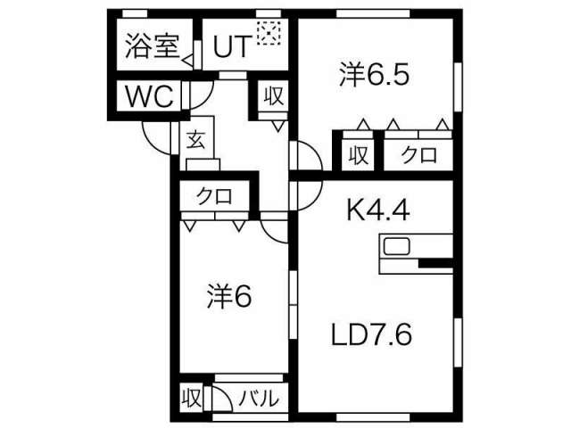 | 詳細間取 | 2LDK (洋6帖×1、洋6.5帖×1、LDK12帖) | ||