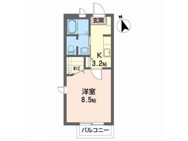 | 詳細間取 | 1K (洋8.5帖×1、キッチン3.2帖) | ||