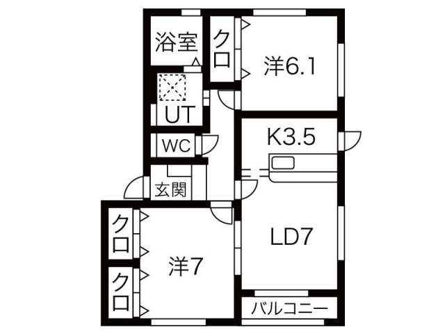 | 詳細間取 | 2LDK (洋6.1帖×1、洋7帖×1、LDK10.5帖) | ||