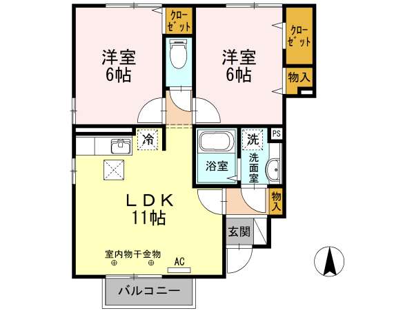 | 詳細間取 | 2LDK (洋6帖×2、LDK11帖) | ||