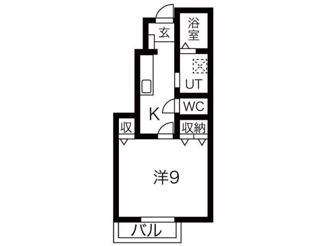 | 詳細間取 | 1K (洋9帖×1、キッチン4.14帖) | ||