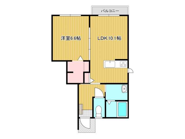 | 詳細間取 | 1LDK (洋6.6帖×1、LDK10.1帖) | ||