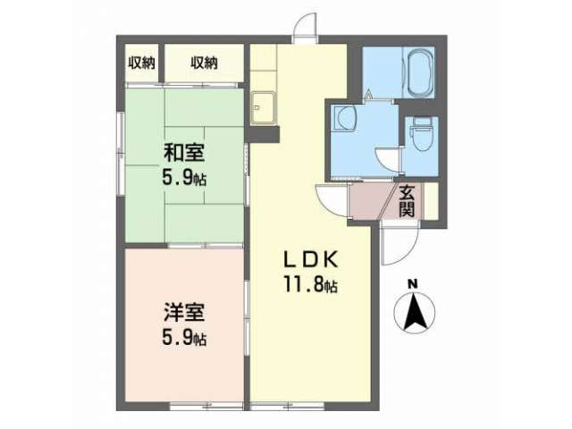 | 詳細間取 | 2LDK (和5.9帖×1、洋5.9帖×1、LDK11.8帖) | ||