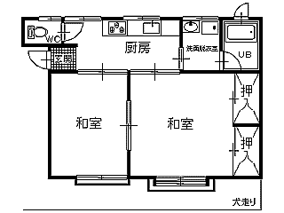 | 詳細間取 | 2K (和8帖×1、和6帖×1、キッチン3帖) | ||