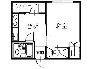 | 詳細間取 | 1K (和6帖×1、キッチン4帖) | ||
