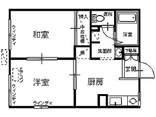 | 詳細間取 | 2DK (和6帖×1、洋6帖×1、DK6帖) | ||