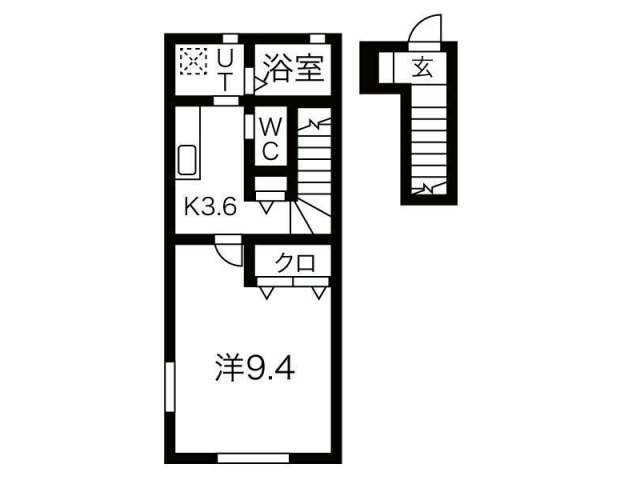 | 詳細間取 | 1K (洋9.4帖×1、キッチン3.6帖) | ||