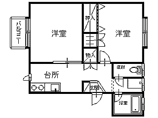 | 詳細間取 | 2K (洋7帖×1、洋6帖×1、キッチン3帖) | ||