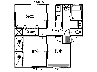 | 詳細間取 | 3K (和6帖×1、洋6帖×1、和5.5帖×1、キッチン4帖) | ||