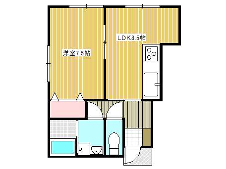 | 詳細間取 | 1LDK (洋7.5帖×1、LDK8.7帖) | ||