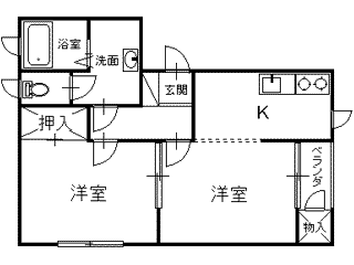 | 詳細間取 | 2K (洋6帖×2、キッチン4帖) | ||