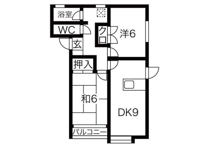 | 詳細間取 | 2LDK (洋6帖×1、和6帖×1、LDK9帖) | ||