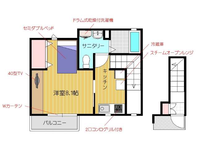 | 詳細間取 | 1K (洋8.1帖×1) | ||