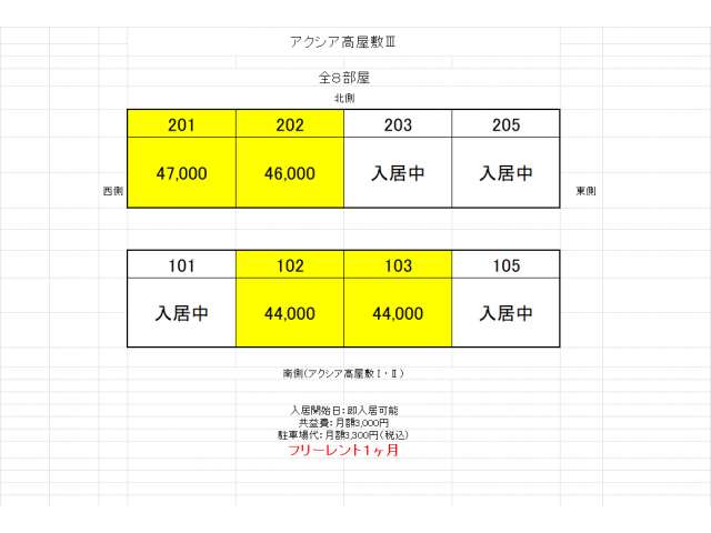 | 駐車場 | 敷地内 3,300円 | 建物構造 | 木造 地上2階建 |