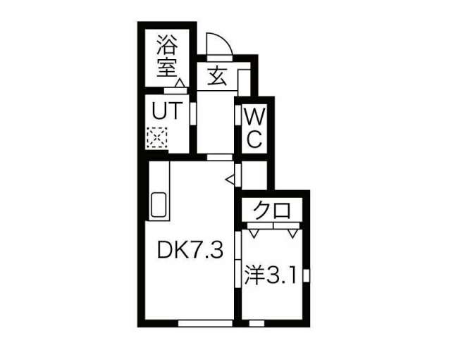 | 詳細間取 | 1DK (洋3.1帖×1、DK7.3帖) | ||