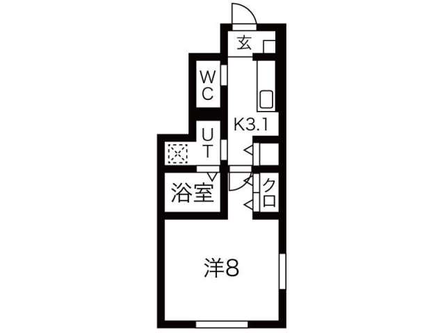 | 詳細間取 | 1K (洋8帖×1、キッチン3.1帖) | ||