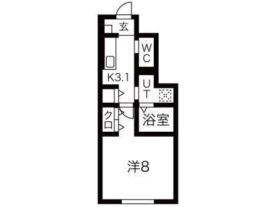 | 詳細間取 | 1K (洋8帖×1、キッチン3.1帖) | ||