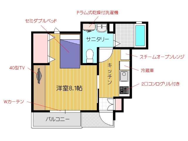 | 詳細間取 | 1K (洋8.1帖×1) | ||