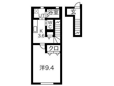 | 詳細間取 | 1K (洋9.4帖×1、キッチン3.6帖) | ||