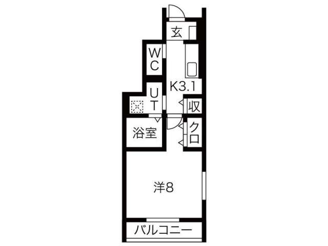 | 詳細間取 | 1K (洋8帖×1、キッチン3.1帖) | ||