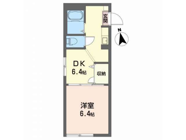 | 詳細間取 | 1DK (洋6.4帖×1、DK6.4帖) | ||