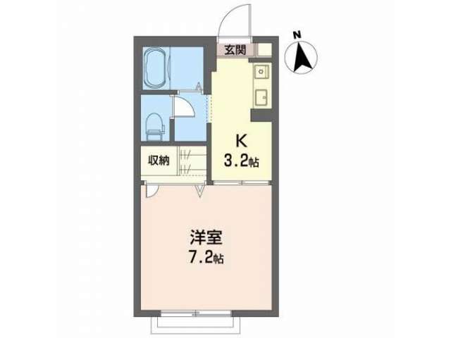| 詳細間取 | 1K (洋7.2帖×1、キッチン3.2帖) | ||