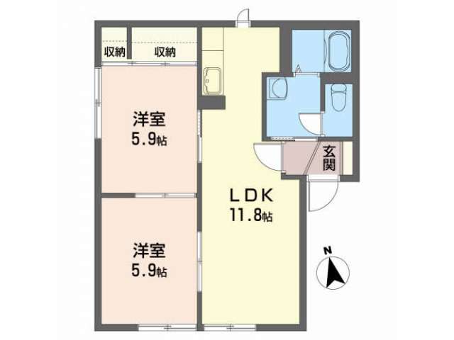 | 詳細間取 | 2LDK (洋5.9帖×2、LDK11.8帖) | ||
