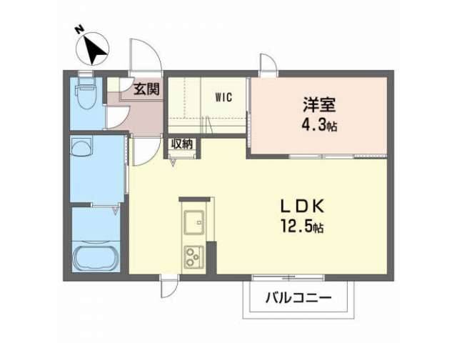 | 詳細間取 | 1LDK (洋4.3帖×1、LDK12.5帖) | ||
