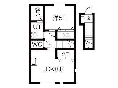 | 詳細間取 | 1LDK (洋5.1帖×1、LDK8.8帖) | ||