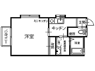 | 詳細間取 | 1K (洋8帖×1、キッチン2帖) | ||