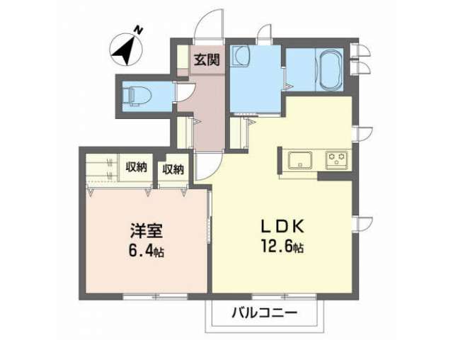 | 詳細間取 | 1LDK (洋6.4帖×1、LDK12.6帖) | ||