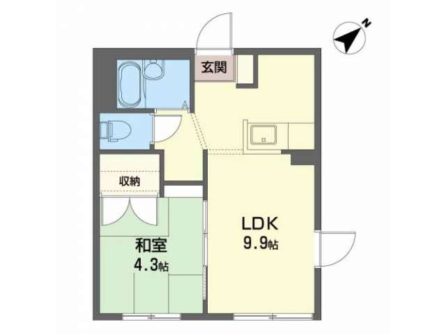 | 詳細間取 | 1DK (和4.3帖×1、DK9.9帖) | ||