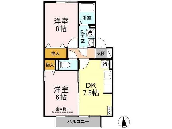 | 詳細間取 | 2DK (洋6帖×2、DK7.5帖) | ||