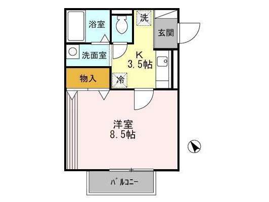 | 詳細間取 | 1K (洋8.5帖×1、キッチン3.5帖) | ||