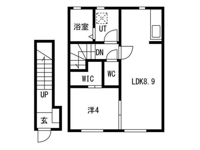 | 詳細間取 | 1LDK (洋4帖×1、LDK8.9帖) | ||
