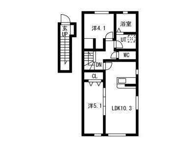 | 詳細間取 | 2LDK (洋5.1帖×1、洋4.1帖×1、LDK10.3帖) | ||